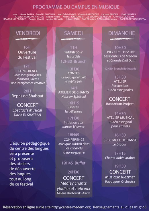 Du 21 au 23 avril 2017, le centre des langues et des cultures juives (CLCJ) propose une rencontre festive autour des langues juives au Centre Medem-Arbeter Ring.