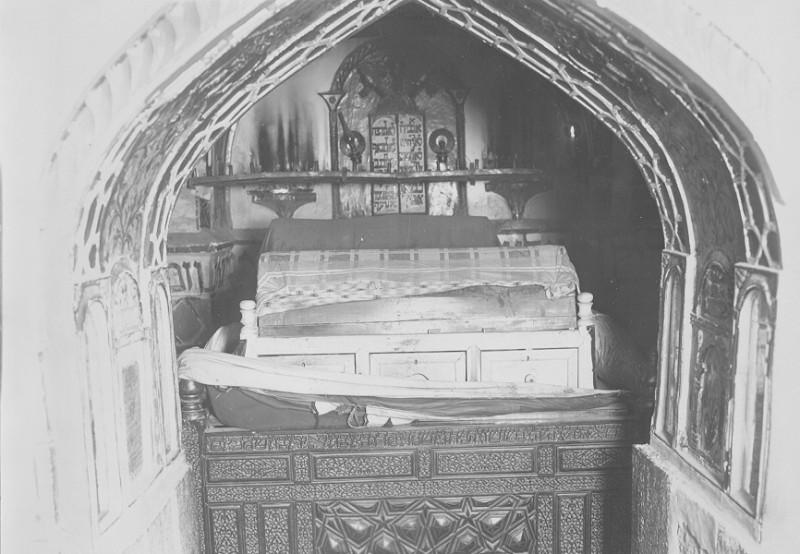 Une fois traversée la première salle, on passe dans une seconde pièce dans laquelle se trouvent côte à côte deux cénotaphes, ceux d’Esther et de Mardochée, son oncle, recouverts de soies brodées.