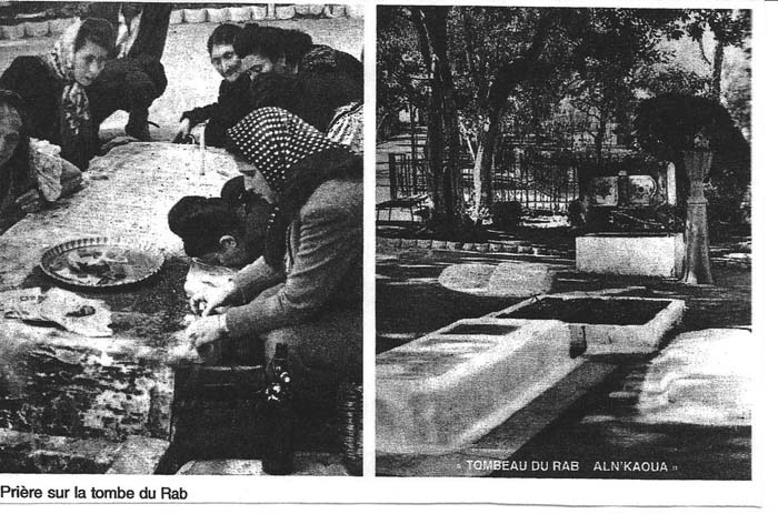 J’etais heureux de vivre dans une ville ou l’on pouvait voir des ruines romaines, des mosquées, des églises, des synagogues, et, le tombeau d’Ephraim Enkaoua, rabbin célèbre qui avait fui les persécutions espagnoles après le pogrom de 1391, et qui s’etait établi a Tlemcen. Son tombeau devint rapidement un lieu de pélerinages pour tous les Juifs d’Algérie. (Photos Entrée des Jardins du Rab, Pelerinage du RAB)