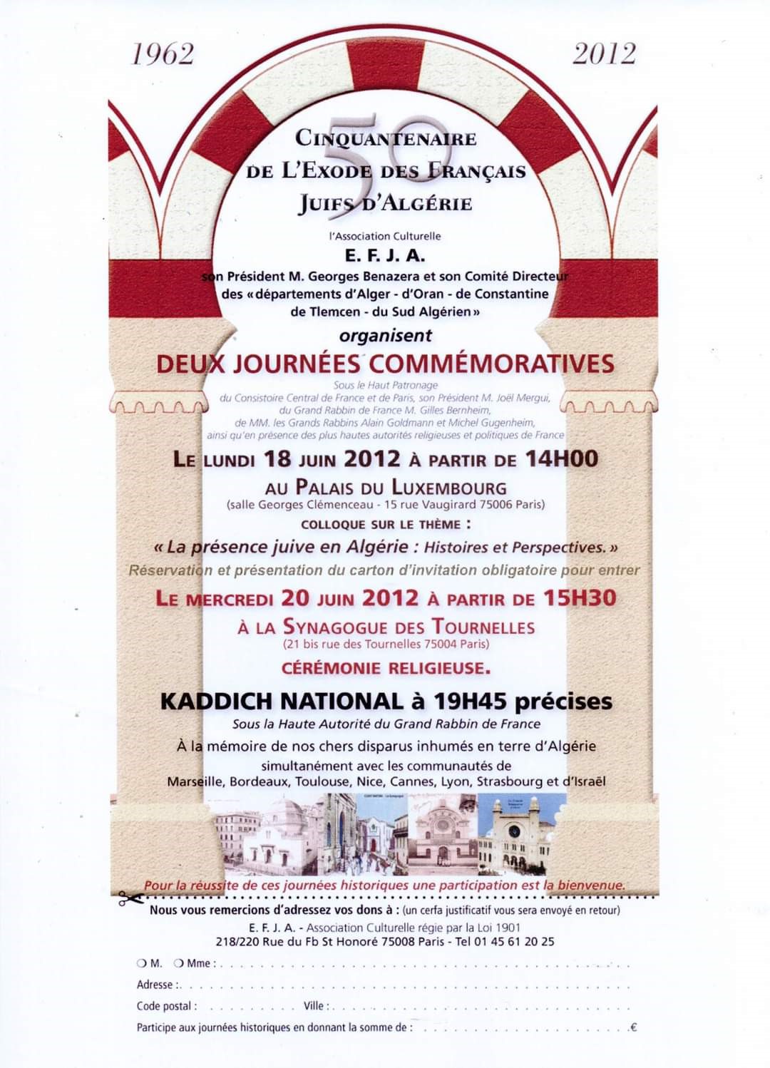 Représentant les départements d’Alger, Constantine, Oran, Tlemcen et le Sud algérien, cette délégation a décidé de créer un kaddish national prononcé depuis la France et de fonder une association, "Exode des Français Juifs d’Algérie", l’EFJA.