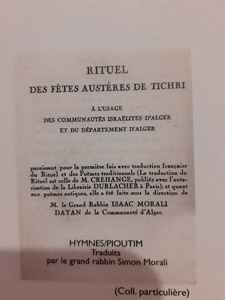 lus tard, en 1942 et jusque dans les années 1952, Simon Morali s’attela à la traduction d’un très grand nombre de pyoutim (poèmes) de ce Mahzor qui parut en 1952 et qui fut réédité de nombreuses fois depuis. La dernière édition à notre connaissance date de 1978.