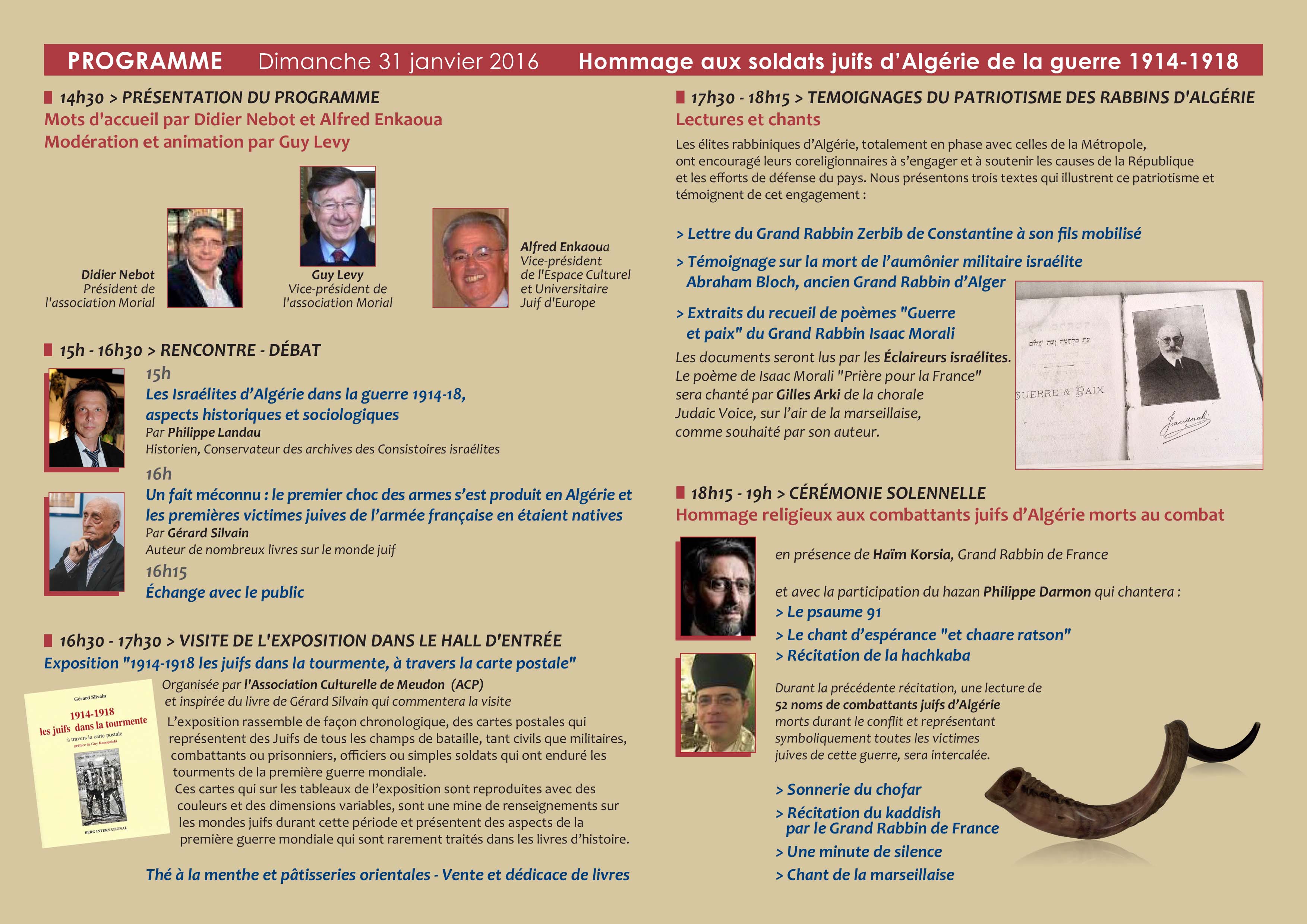 Dimanche 31/01/2016, MORIAL avait organisé un Hommage aux soldats Français juifs d'Algérie "Morts pour la France" en 1914-1918