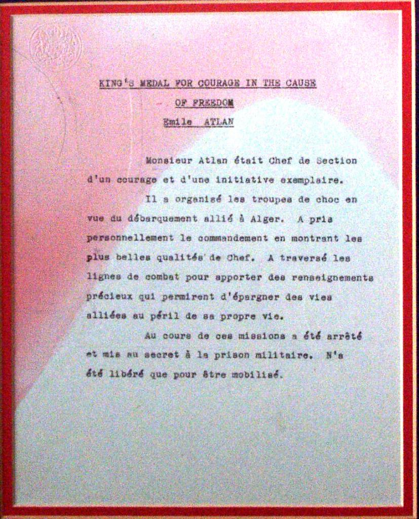 merci pour ce long temoignage pour ton pauvre pere, bravo pour ces belles medailles hautement meritees. Honneurs a son grand courage en tant que Chef des troupes de choc lors de l'Operation TORCH le 8 novembre 1942 a Alger et dans la mission de la neutralisation de la Prefecture d Alger et du prefet Emmanuel TEMPLE.
