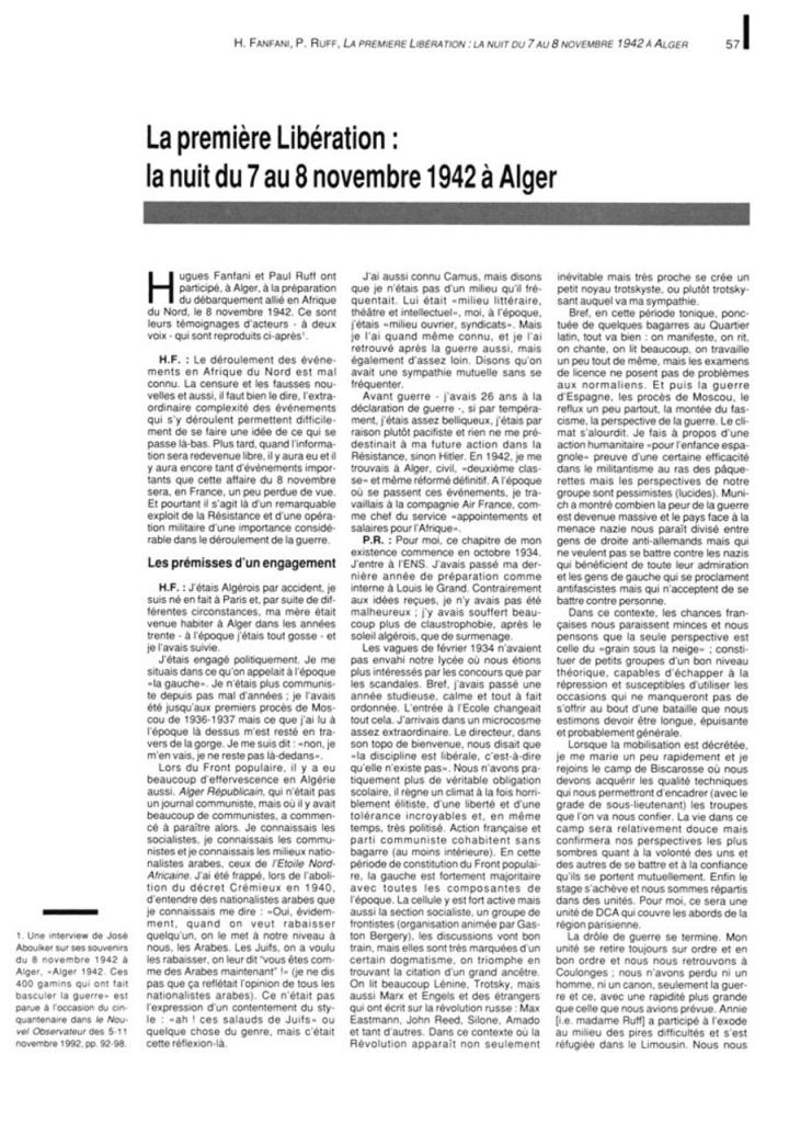 La première libération :l a nuit du 7 au 8 novembre 1942 à Alger