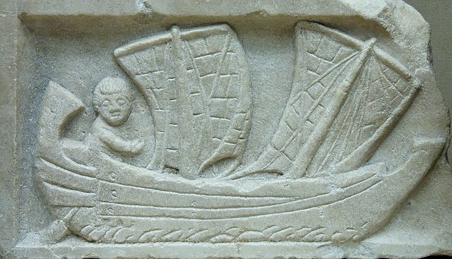 Représentation d'un navire sur un relief romain en marbre du iie siècle