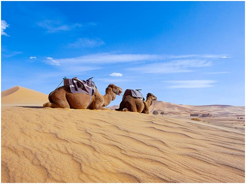 Après plusieurs jours de voyage et être passés de k’çour en k’çour, le convoi parvint au défilé du Djebel Amour. Au loin, David aperçut comme dans un rêve une oasis à perte de vue : Aïn Médhi, première grande ville du Mzab, bâtie sur une colline, parsemée de mille jardins voluptueux.