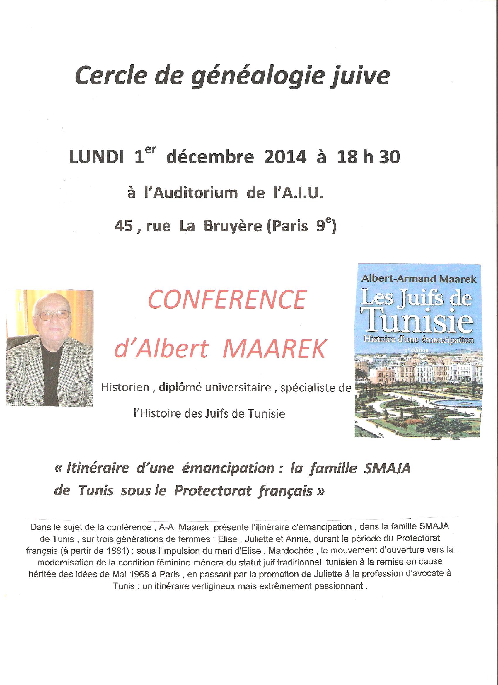 Lundi 1er décembre à 18h30, Albert Maarek, adhérent de MORIAL, présente la conférence : "Itinéraire d’une émancipation : La famille SMAJA de Tunis sous le Protectorat français"