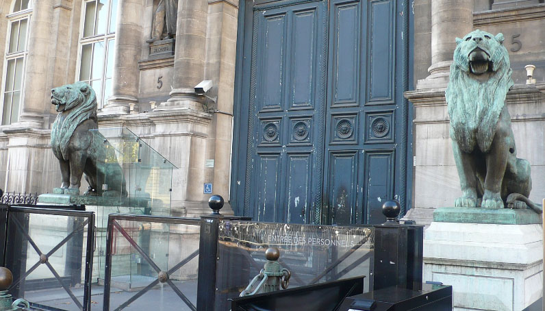 Les lions de l'Hôtel de Ville de Paris, se trouvent derrière le bâtiment au 3 et 5 rue Lobau. (cliquer sur l'image pour l'agrandir)Ceux de la Mairie de Paris sont aussi au nombre de deux et se trouvent devant l'entrée du n° 5 de la rue Lobau.