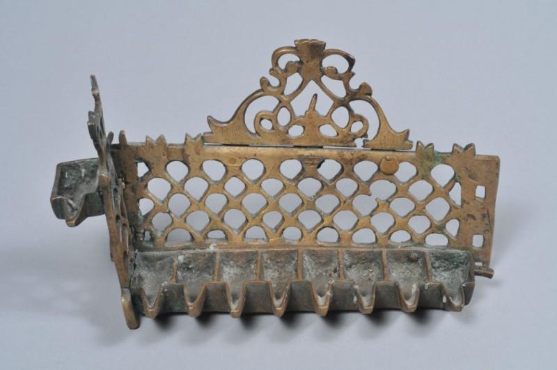 Utilisée en Algérie et datant de la fin du 19e siècle, cette Hanoukiyah qui porte le N° d’inventaire 2010.03.025, est un don de Mme Azoulai-Valensin.