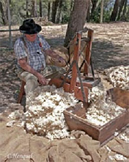 Toute la matinée, dans la poussière et une légère persistante odeur de suint libérée par le cardage, assis sur l’arrière de la cardeuse, il introduisait d’une main la laine, de l’autre il actionnait le balancier en bois muni de gros clous, dans un mouvement régulier de va-et-vient pour aérer la laine tassée et jaunie des matelas éventrés. Il étalait ensuite les flocons de laine souple, mousseuse, soyeuse et débarrassée des impuretés sur un grand drap blanc déployé sur les tomettes rouges du sol.