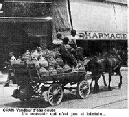 Des marchands d’eau douce de la source Bredeah livraient, maison après maison, dans des charrettes tirées par un ou deux bourricots ou mulets, des bonbonnes de 5 ou 10 litres en verre épais recouvert de raphia ou d’osier.