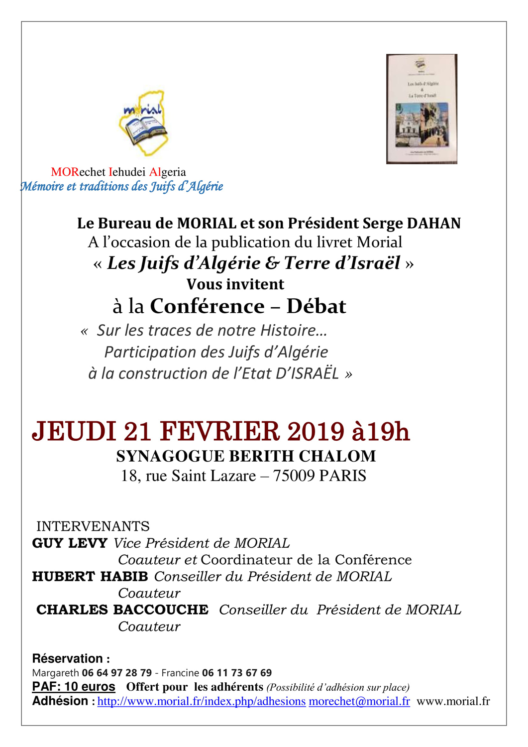 Pour vous le présenter, une conférence est organisée jeudi 21 février 2019 à 19h à la synagogue Berith Chalom, 18 Rue Saint-Lazare, 75009 Paris.