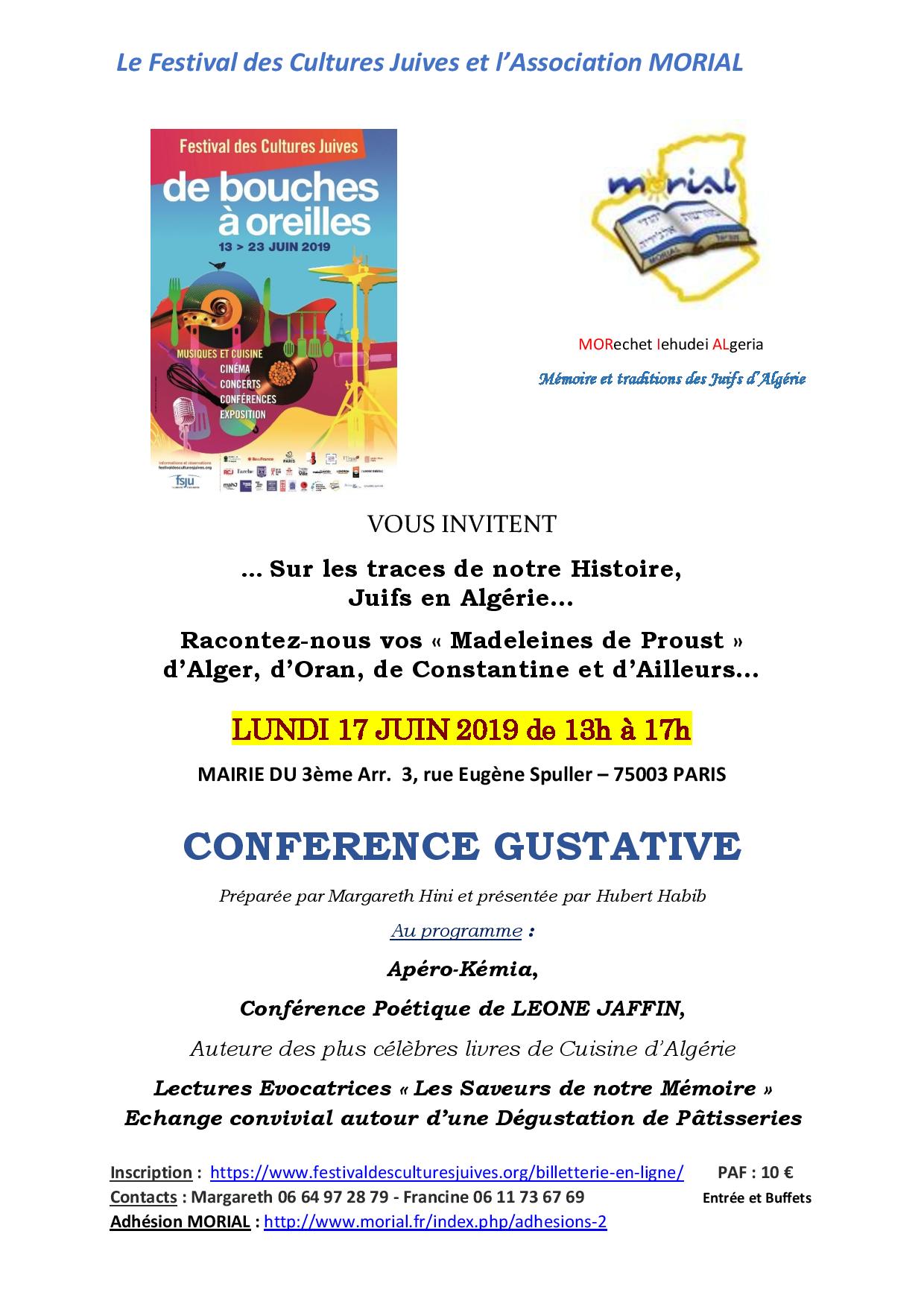 14h : La cuisine de Là-bas… Conférence poétique et gustative de Léone Jaffin, spécialiste de la cuisine des Juifs d’Algérie,
