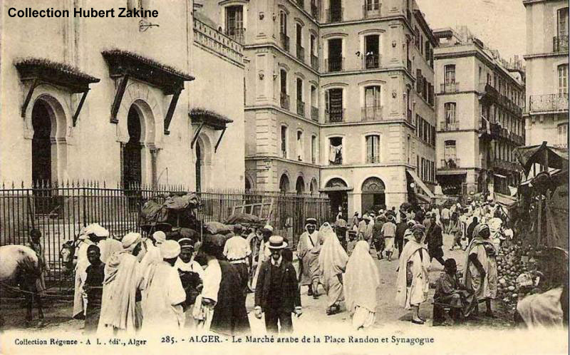 ALGER - Le marché arabe de la Place Randon et la Synagogue Collection Hubert Zakine