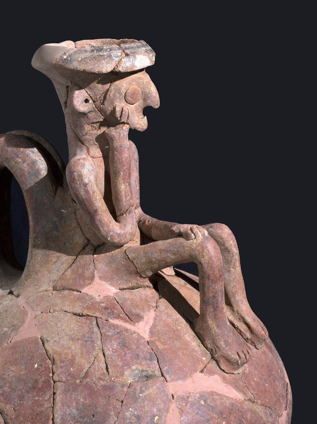 Le « Penseur » découvert en Israël sur une carafe de l’Age du bronze. © Autorité des antiquités d’Israël