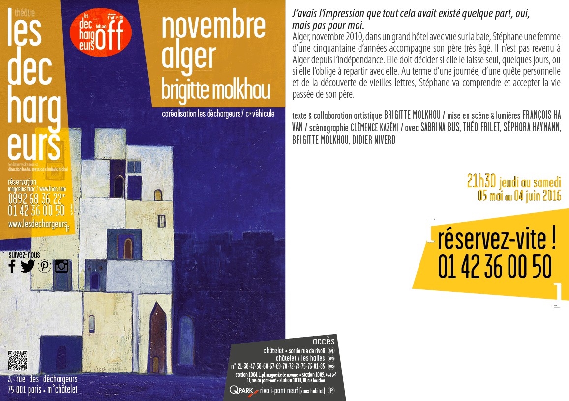 Au programme : la pièce de Brigitte Molkhou "NOVEMBRE ALGER"
