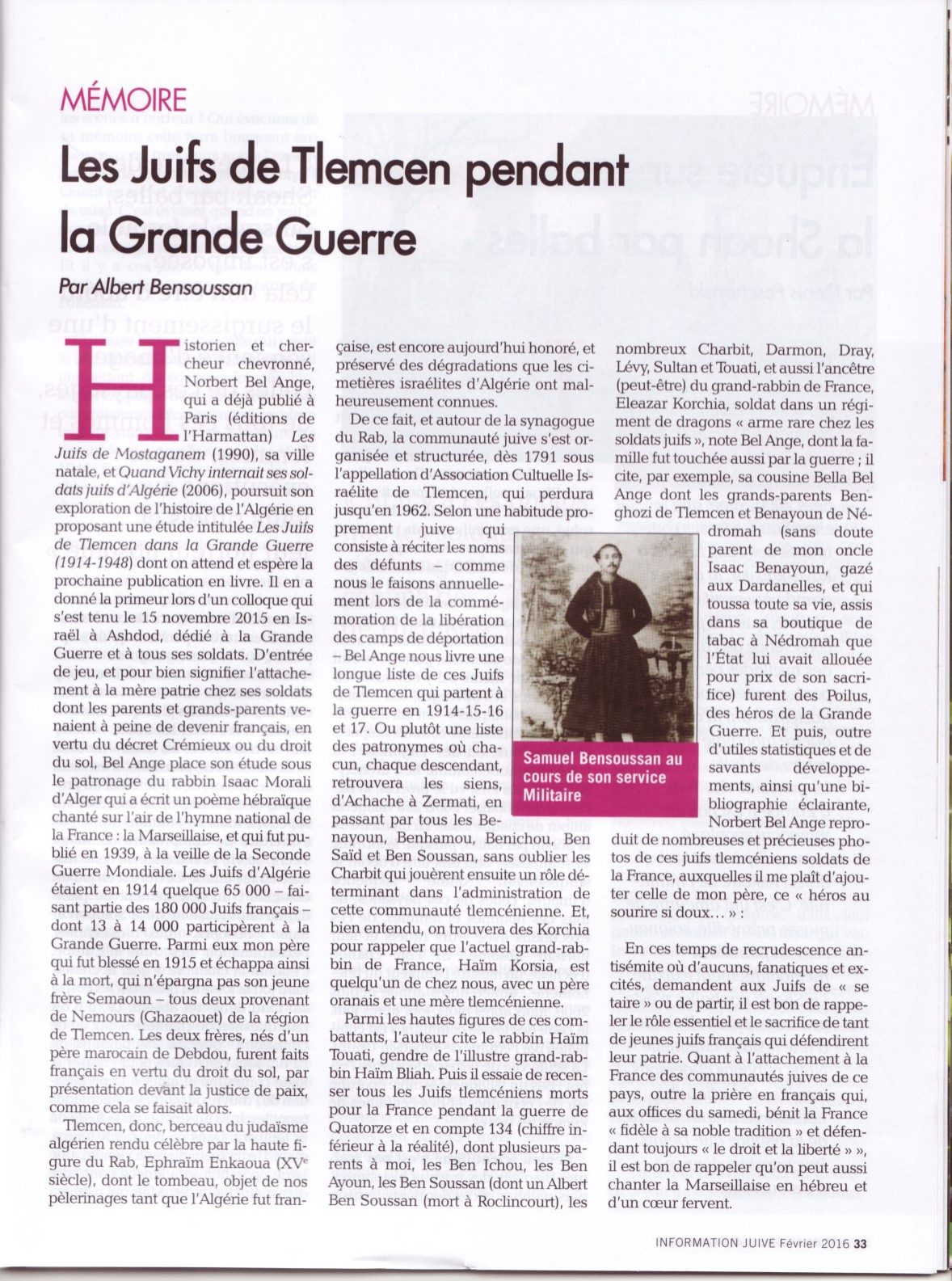 Article paru sur "INFORMATION JUIVE" de février 2016 (page 33)