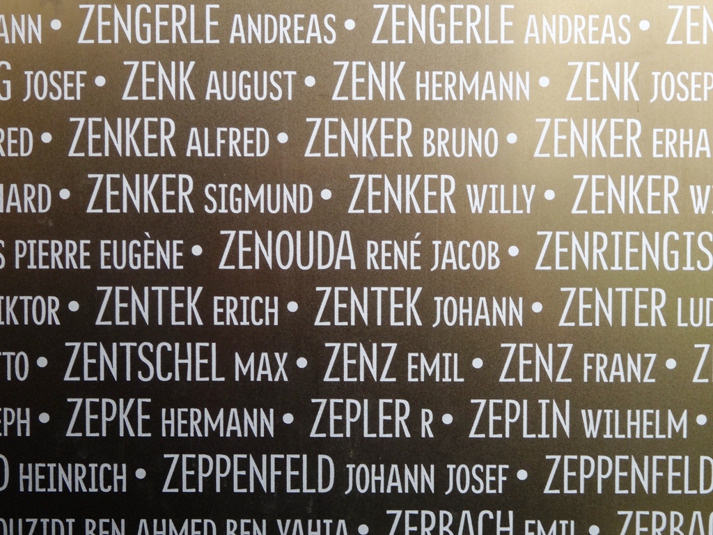Extrait de la 4e partie de la 1ère page des noms débutant par la lettre Z (Clichés Sylvie Zenouda - avril 2015) Anneau de la Mémoire