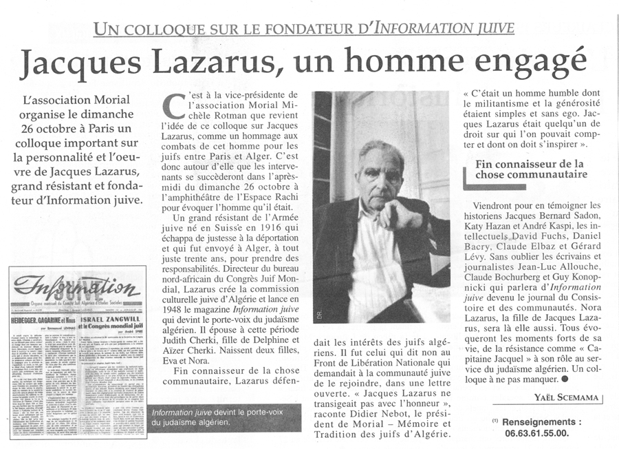 "Les Juifs d’Algérie : entre la lutte contre l’antisémitisme et celle pour Israël".