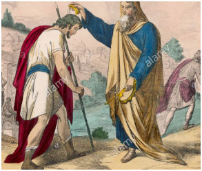On y trouve un prophète âgé, las. Il investit de ses fonctions et l’oint avec l’huile d’onction Saül désigné par D car le peuple, jamais satisfait a réclamé un roi pour le diriger.