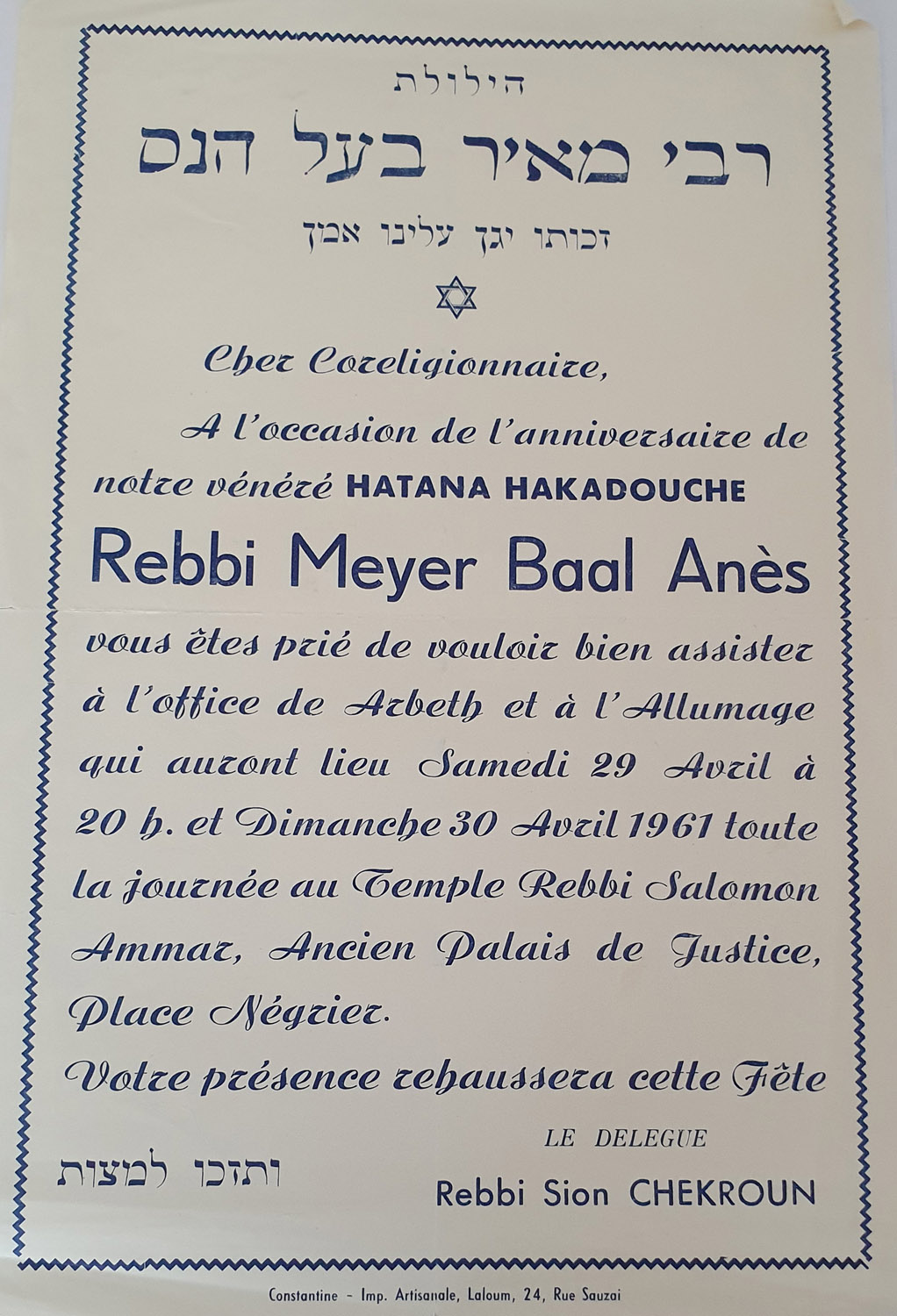 Synagogue de la rue de DIJON à AlgerLAG (18 Iyar 5785/16 mai 2025) que l’on écrit en Hébreu avec un lamed et un guimel signifiant 33 car il s’agit du 33ème jour du Ômer, jour anniversaire de naissance et du décès de Rabbi Shimôn bar Yohay.
