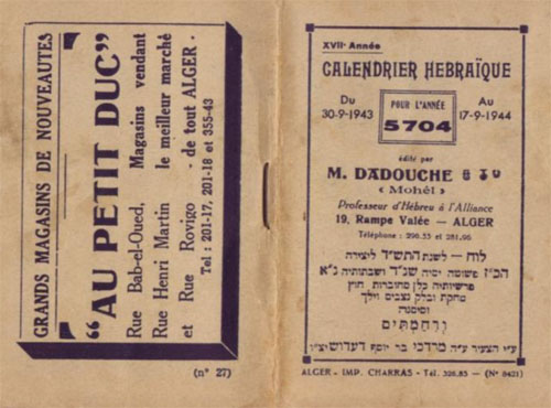 LES FETES JUIVES D’AUTOMNE, à ALGER (Rosh Hashana, Yom Kippour et Souccot). (2)