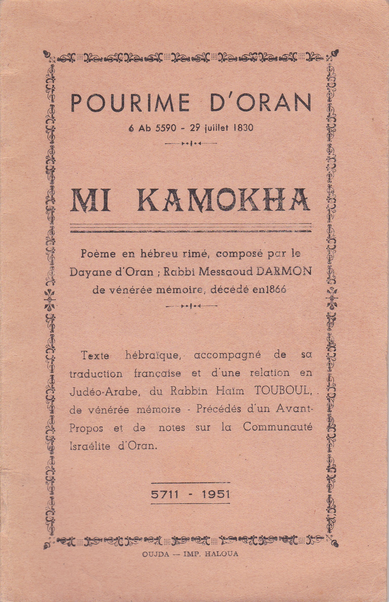 Le Dayan rav Messaoud Darmon rédigea à cette occasion un poème, ''Mi Kamo'ha'', qui est lu jusqu'à aujourd'hui dans les synagogues de rite oranais le Chabbat qui précède le 6 av.