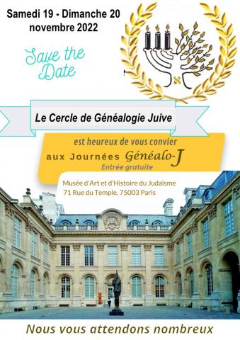 Le Cercle de Généalogie Juive est heureux de vous convier aux Journées de la Généalo-J.
