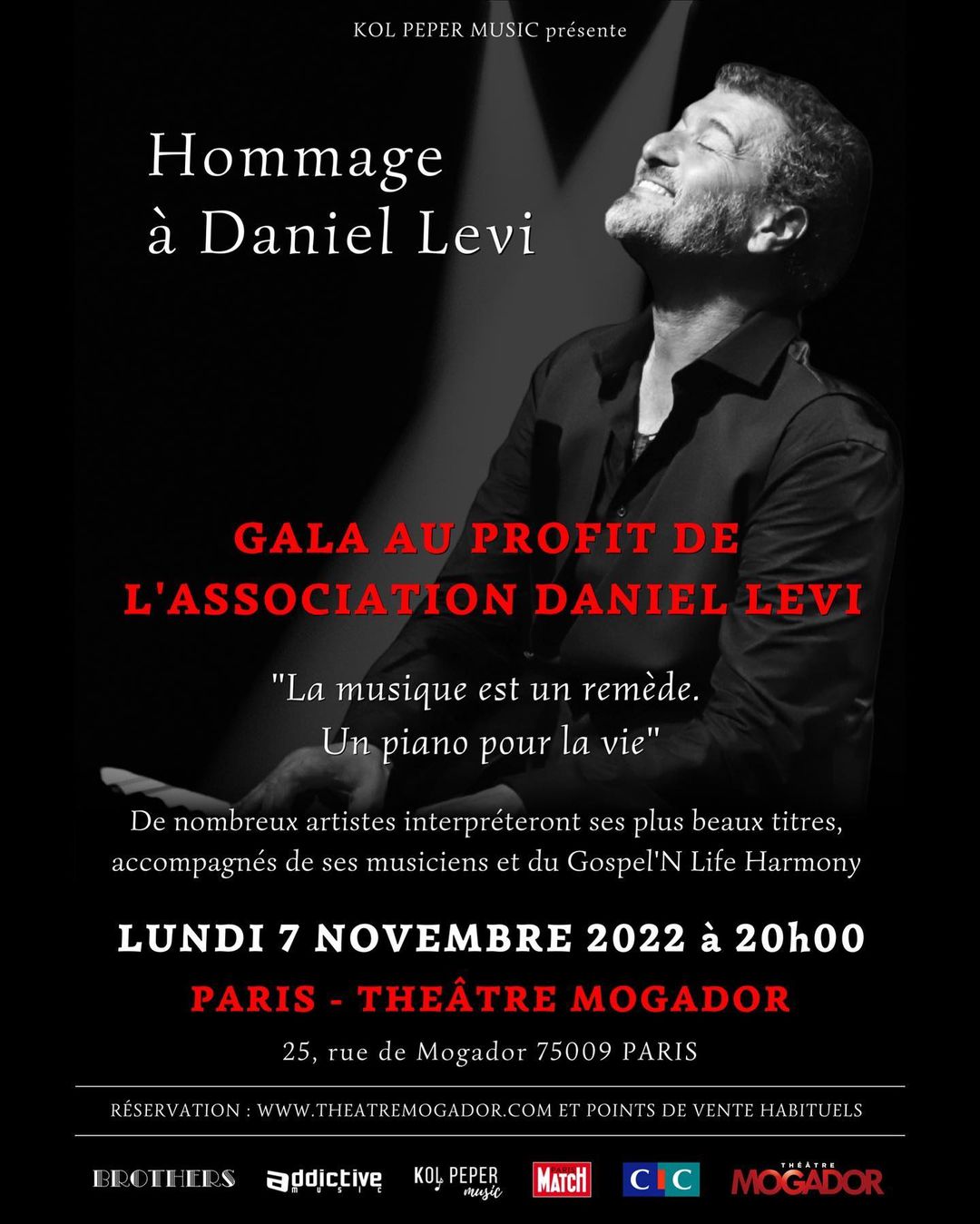 Ce gala est organisé au profit de l’association Daniel Lévi au Théâtre Mogador, 25 rue de Mogador, 75009 Paris.