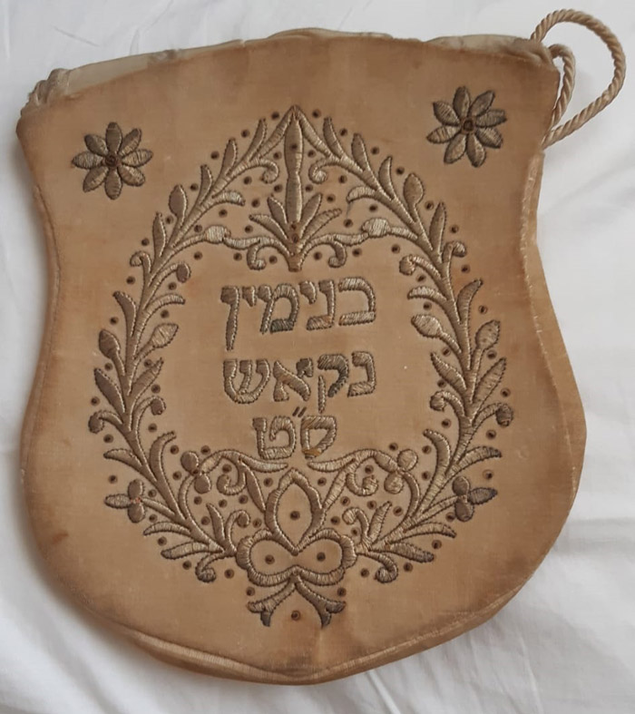 Pochette (recto) pour le Talit et les téphilines de la Bar Mitzvah en 1925 ,du papa de notre Ami Jacques NakacheEn 1391, sur les 300.000 Juifs expulsés d'Espagne, quelque 50 à 60.000 sont arrivés en Algérie, dont 30.000 de Barcelone et de Catalogne.