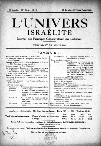 L'histoire de L’Univers Israélite est peu connue et peu d’études lui ont été consacrée.