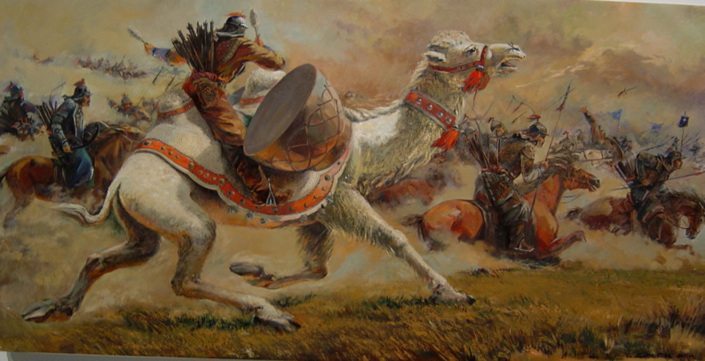 Ayant demandé aux habitants quel chef puissant restait encore en Ifriqiya, il lui fut répondu que la Kahéna exerçait un pouvoir tel que, s’il parvenait à la vaincre, il serait le maître absolu de tout le Maghreb. Il se mit en marche vers l’Aurès. A la nouvelle de cette menace, la Kahéna descendit de ses montagnes à la tête d’une armée innombrable.