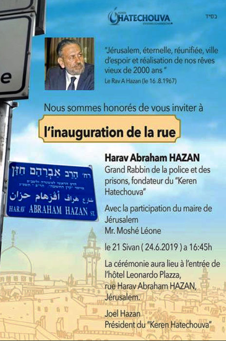 A Jérusalem : inauguration d’une rue au nom de Harav ABRAHAM HAZAN