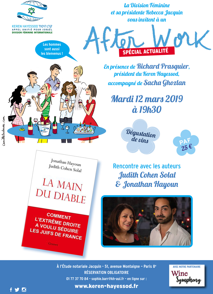 Mardi 12 mars 2019 à 19h30, Judith Cohen Solal et Jonathan Hayoun, auteurs de " La main du diable" ou comment l'extrême droite a voulu séduire les Juifs de France, vous invitent à partager leurs réflexions