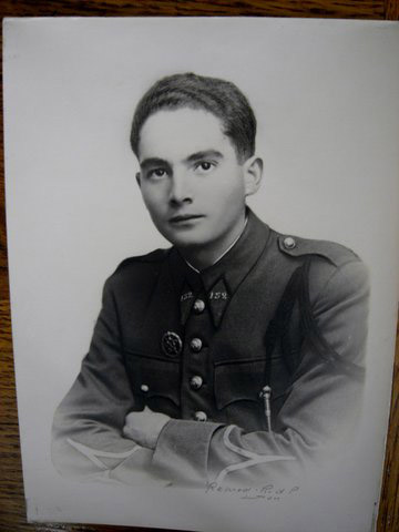 Photo de Jacques Lazarus prise entre son entrée au 152e régiment d'infanterie de Colmar et son exclusion de l'armée le 26 aout 1941, en vertu de la loi du 3 octobre 1940. Coll. J.Lazarus.Grand résistant, il fut le créateur d'Information juive, il prit la tête du congrès juif mondial pour l'Afrique du Nord.