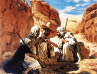 Lentement il se releva. Il regarda ses vêtements tachés de sang. Ce sang d’un autre qui avait leurré les bandits. Étonné d’être toujours en vie, sous le soleil implacable de midi, il se pencha sur les corps de ses compagnons. Les trois gardes étaient morts. Bouzid, blessé, s’était évanoui. David comprit que son associé lui avait servi de bouclier et que la balle qui l’avait atteint lui était destinée. Les brigands étaient partis avec les mules, ne laissant que l’âne, trop vieux et trop lent.