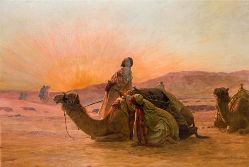 La nuit venue, tous s’asseyaient autour du feu. L’air embaumait l’odeur piquante du thé à la menthe, les galettes craquaient sous les dents et les dattes moelleuses et douces terminaient le repas frugal. Les hommes savouraient ce moment de détente. Peu à peu, les langues se déliaient; c’était l’heure des légendes et des contes qui enchantaient David. Les conversations languissaient, rires et paroles s’espaçaient, tandis que la pourpre du crépuscule enveloppait les dunes lointaines et que le ricanement des chacals succédait aux palabres des hommes.
