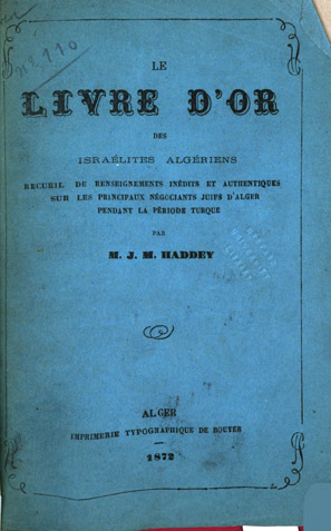 Cliquez sur la couverture pour accéder au livre Le Livre d'or des Israélites algériens de J.M. Haddey constitue une référence incontournable pour quiconque s'intéresse à l'histoire économique et sociale des communautés juives en Afrique du Nord, et plus particulièrement à celle d'Alger sous domination ottomane. Cet ouvrage pionnier offre une analyse détaillée et nuancée du rôle prépondérant que les négociants juifs ont joué dans le développement du commerce algérois et dans l'insertion de la ville dans les réseaux commerciaux méditerranéens.