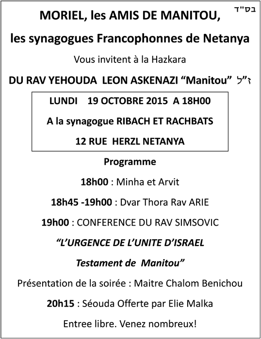 Le rav Yéhouda Léon Askénazi (naissance le 21 juin 1922 à Oran – décès le 21 octobre 1996 à Jérusalem) est plus connu sous le nom de Manitou.