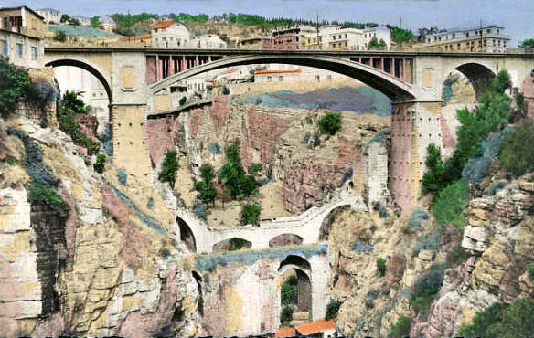 Le pont Sidi Rached est un viaduc routier en pierres de taille, construit de 1908 à 1912 par l'ingénieur Paul Séjourné. Il est composé de 27 arches, sa portée principale est de 70 mètres à l'endroit où il enjambe les gorges, sa longueur totale est de 447 mètres, sa largeur de 12 mètres et la grande arche culmine à 102,50 mètres au-dessus des flots de l'Oued Rhumel. (source: Bulletin SGN 2008)