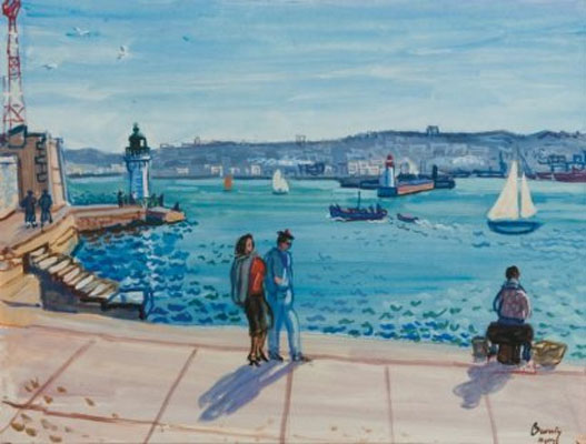 Sur les quais du Port d'Alger. Gouache signée et datée « Alger (19)57 »