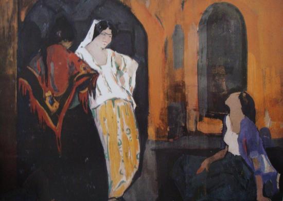 Femmes juives dans leur intérieur (Gouache sur carton, 32 x 45 cm)