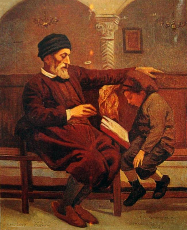 Rabbin enseignant un enfant (Huile sur toile, 73 x 60 cm)                                                Le vieillard