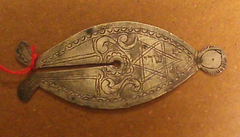 De dimensions : H. 10,2 - L. 4,1 cm, elle est en métal gravé avec dans sa partie supérieure une étoile de David à l'intérieur de la quelle est inscrit en hébreu : "Shadday", un des noms de Dieu.