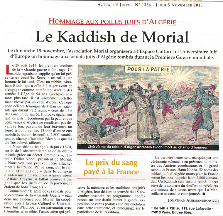 - Dans la presse : sur Actualité Juive du 5 novembre 2015