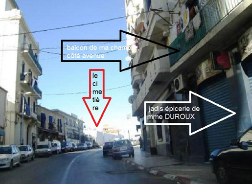Parmi les figures religieuses, les rabbins FINGHERUT, et plus tard ASHKENAZI (le père de Manitou), parmi les civils, la célèbre famille ABOULKER. Longtemps après, j'apprendrai que Yaya, le sympathique chauffeur et homme à tout faire, musulman, de l'école rabbinique, était un membre du FLN. Donc, la rue Léon Roche étant plus proche de la rue Suffren, que le 84 avenue Malakoff, le jeudi, jour de Talmud Torah, j'allais déjeuner chez mon oncle et ma tante. Du balcon, je voyais la terrasse de l'immeuble de deux étages, en face. L'immeuble appartenait à l'un des frères de mon oncle. Et sur la terrasse se trouvait l'école ORT d'Alger. Depuis le balcon, j'aimais taquiner le vieux monsieur, en blouse grise factotum de l'école.