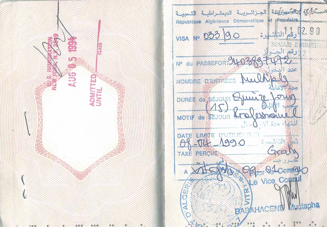 Après avoir réglé les conditions et le planning de ma mission en Algérie, l’ambassade d’Algérie me délivre un visa et le 8 mars 1990 j’atterris à l’aéroport Houari Boumediene d’Alger.