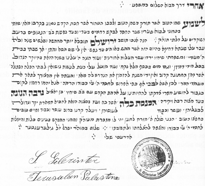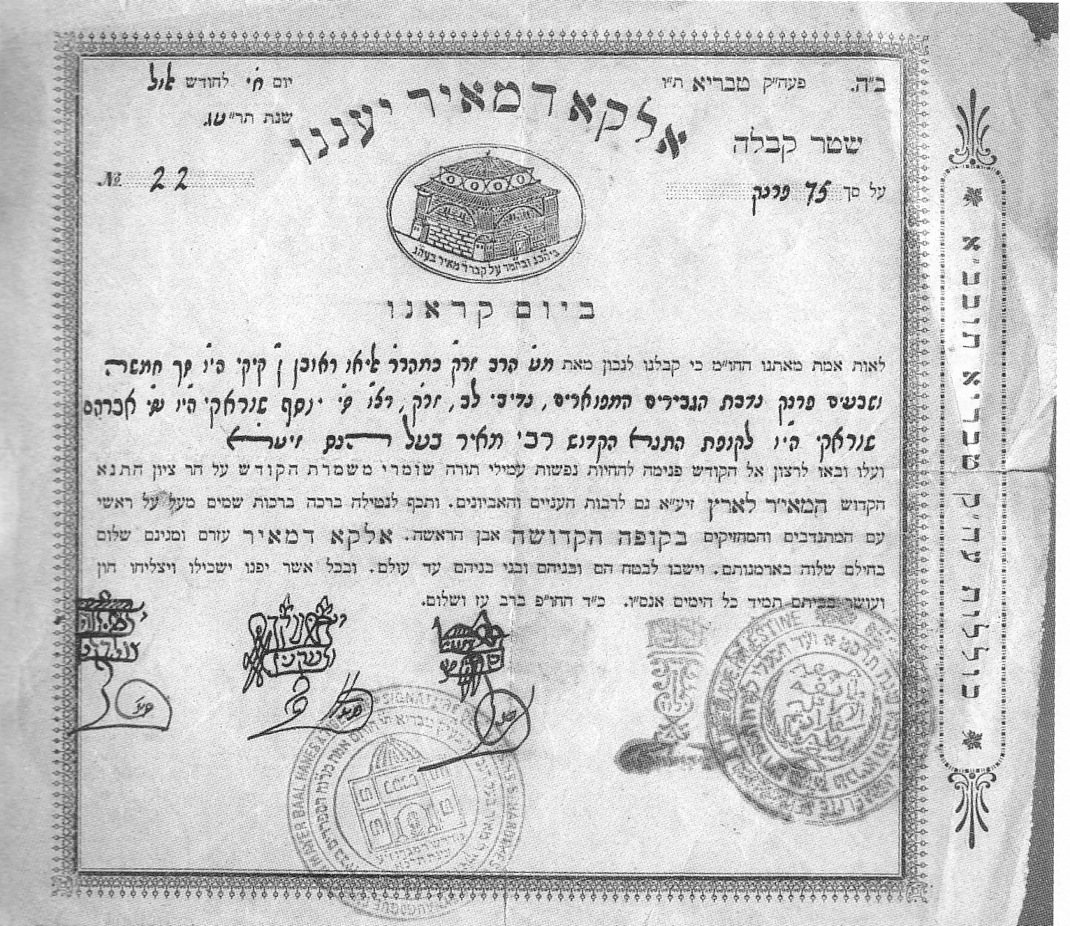 Don de Joseph et Abraham Chouraqui à la communauté de Safed