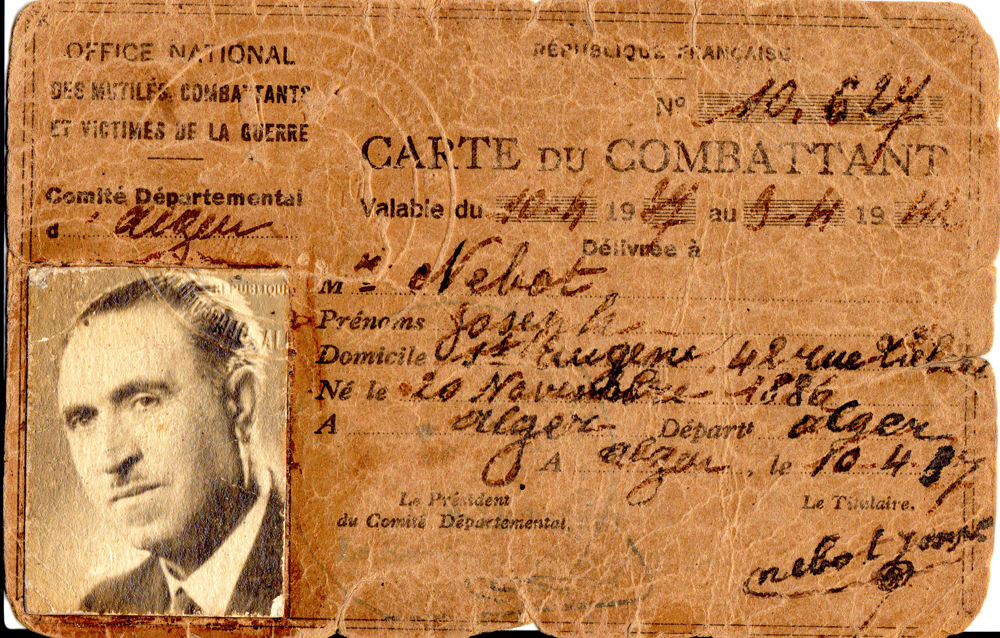 Simon Nebot et Joseph Nebot cousins germain d’Eliezer Nebot (mon père) ont fait la guerre de 1914-1918 :