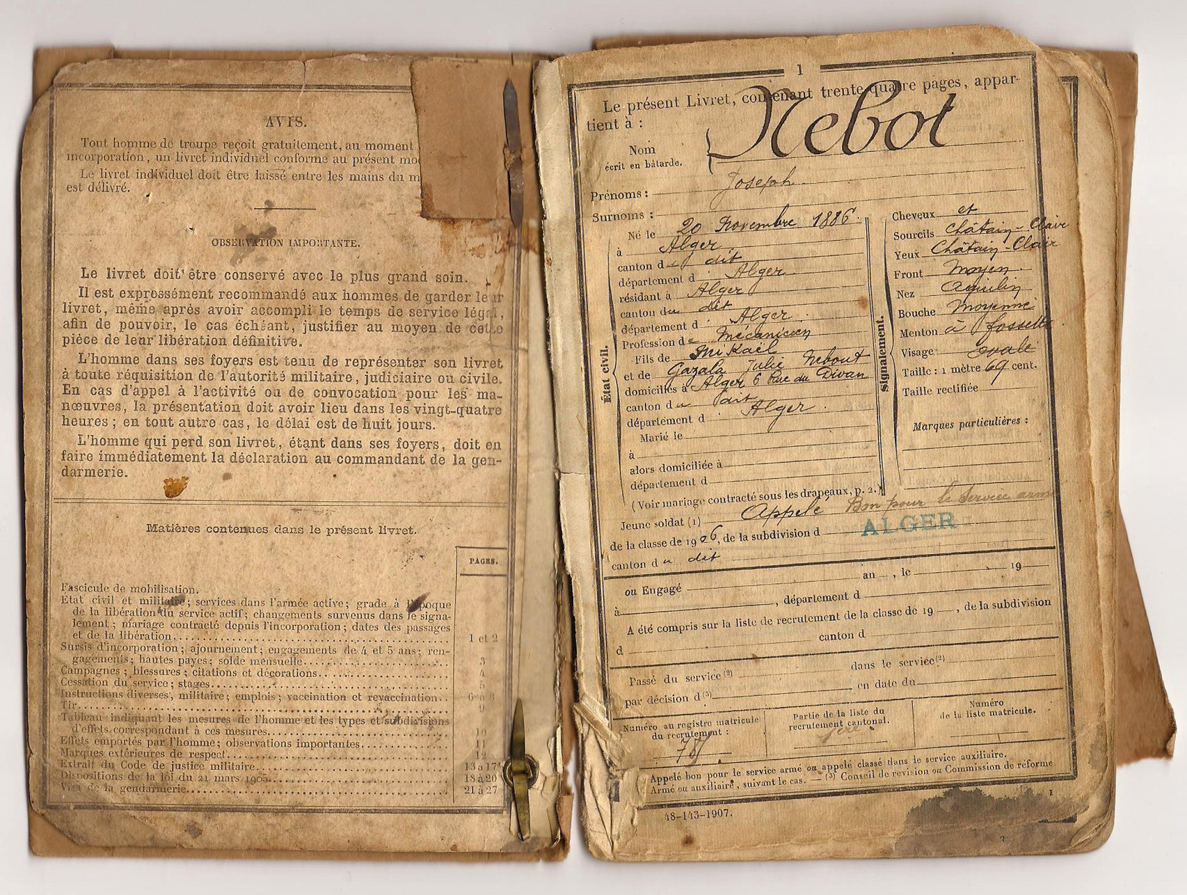 Il m’indiqua que prenant sa retraite, il avait mis de l’ordre dans ses affaires, et qu’il avait trouvé de vieux papier, dans sa cave, appartenait à son Grand Père, Joseph Nebot, cousin de mon Père et que ces papiers seraient mieux chez moi.